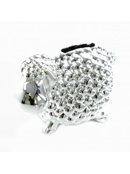 Cette tirelire enfant est en métal argenté, elle représente un petit mouton. Cette tirelire sera un objet utile et décoratif pour une chambre d'enfant.
