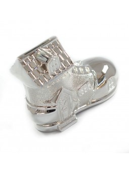 Tirelire chausson Matière métal argenté Personnalisez par un Prénom Livré en coffret
