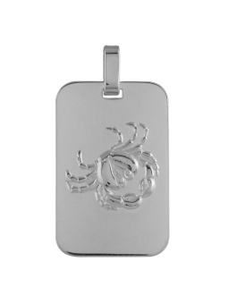 Magnifique médaille en Argent 925/1000, forme rectangulaire et avec votre signe zodiaque. Il est possible de graver son verso par un prénom et une date, ou un petit mot.