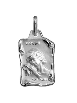 Magnifique médaille en Argent 925/1000, en forme de parchemin et avec votre signe zodiaque. Il est possible de graver son verso par un prénom et une date, ou un petit mot.