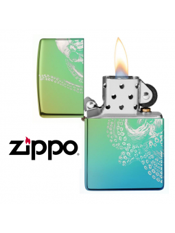 Briquet ZIPPO essence - Pieuvre Géante sur 360° Finition High polish Teal Personnalisez Verso - Dessus capot par Prénom - Initiales Livré en coffret cadeau Compatible avec les différents inserts:Arc Insert - Butane Single Flame - Butane Double Flame