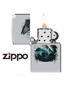 Briquet Fish and Boat Design - ZIPPO - High Polish Chrome