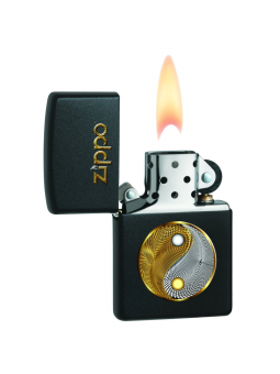 Zippo noir Matt avec impression ying et yang doré / argent Personnalisez sur le Verso par un texte - Image Sur la Tranche par Prénom - Nom - Petit message Livré en coffret Compatible avec les différents inserts: Arc Insert - Butane Single Flame - Butane Double Flame
