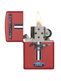Zippo Rouge mat avec impression couleur Emblème Ford MustangPersonnalisez sur le Verso par un texte - ImageSur la Tranche par Prénom - Nom - Petit messageLivré en coffret Compatible avec les différents inserts: Arc Insert - Butane Single Flame - Butane Double Flame