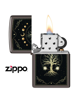 Briquet ZIPPO - MYSTIC NATURE - Finition Black Ice Les phases de la lune au-dessus d'un arbre de vie, côté mystique Personnalisez par Prénom - Nom - Initiales - Message sur la tranche et le verso du Briquet Zippo Photo sur le verso Livré en coffret Compatible avec les différents inserts Arc...