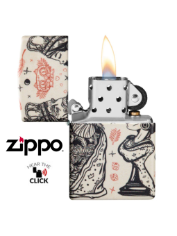 Briquet Zippo Premium - Chess Design - Conception d'échecs Montrez votre habileté et votre stratégie avec ce briquet 540° Color Jeu d'échecs, la reine se prépare à conquérir le roi tandis que la tour s'avoue vaincue Livré en coffret Compatible avec les différents inserts Arc Insert - Butane...