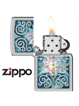 Biquet ZIPPO - Lotus Flower Design - High Polish Chrome