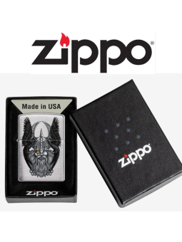 Briquet Zippo - impression couleur d'un Viking sur la face avant du briquet Zippo - Street Chrome Personnalisez sur le Verso par un texte - Image Sur la Tranche par Prénom - Nom - Petit message Livré en coffret Compatible avec les différents inserts: Arc Insert - Butane Single Flame - Butane...