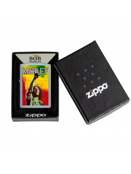 Briquet ZIPPO " BOB MARLEY " - Finition Street Chrome Zippo essence Personnalisez son Verso par Prénom - Message - Photo Livré en coffret Compatible avec les différents inserts: Arc Insert - Butane Single Flame - Butane Double Flame