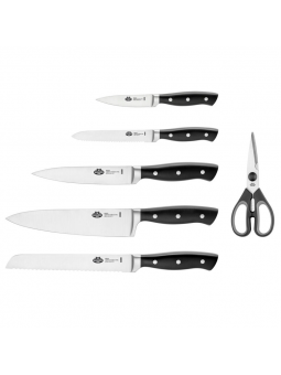 Bloc de 7 pièces cuisine - Ballarini Lame acier inox Manche ergonomique en Pakka cocobolo au design breveté : pour une utilisation sans fatigue et sûr du couteau 6 couteaux de cuisine pour une découpe appropriée à vos besoins Personnalisez Manches et Lames sur couteaux pour un cadeau prestigieux