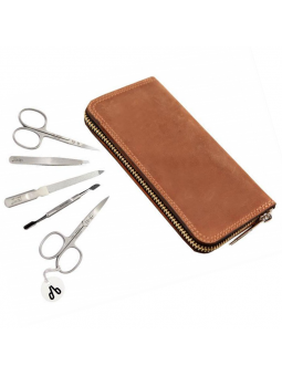 Trousse manucure ALPEN « COUNTRY LINE » Cuir country à fermeture éclair, 5 pièces inox satiné Cet ensemble d'accessoires de qualité pour manucure muni d'une magnifique pochette en cuir sera l'élément indispensable durant vos voyage Une très belle idée cadeau, vous pouvez personnaliser le...
