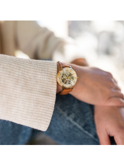 Montre Dame Squelette Automatique - Cadran Bleu - Certus 50 m - Cuir Marron