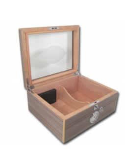 Cave à cigares - Dessus Vitrée - 75 cigares Intérieur cèdre - Hygromètre intégré 2 compartiments - Fermeture avec clef Nous vous proposons de la personnaliser en y apposant une plaque en laiton poli miroir ou aluminium pour initiales - prénom - nom Pour un cadeau prestigieux