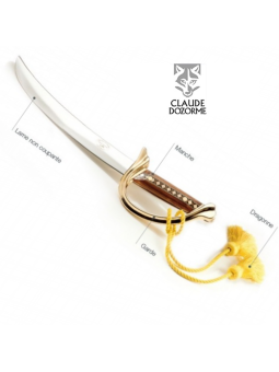 Sabre à champagne Claude Dozorme Ligne Prestige " Made in France " " Sabre Macc Mahon " Son manche est en Micarta noir, possède une garde argenté. Personnalisez ce sabre par un texte ou un logo gravé. Gravure offerte Ce sabre est livré avec son socle en bois d'Acajou et un livret sur l’art de...