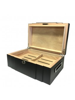 Cave à cigares ECLIPSE en bois de rose brésilien - 75 cigares - Intérieur cèdre espagnol Finition laquée noire Humidificateur Brigham Oasis 100, Hygromètre digital et serrure. Nous vous proposons de la personnaliser en y apposant une plaque en laiton poli miroir pour initiales - prénom - nom...