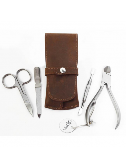 Pochette manucure ALPEN « COUNTRY » Cuir country à fermeture pression, 4 pièces inox satiné Cet ensemble d'accessoires de qualité pour manucure muni d'une pochette en cuir, est très compacte et comprend les outils principaux pour vos voyages Une très belle idée cadeau, vous pouvez...