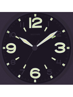 Pendule Rhythm murale quartz - Cage Métal doré - Chiffres arabes lumineux toute la nuit même dans l'obscurité - Mouvement quartz silencieux Diamètre cadran 30 cm Garantie deux ans Marque RHYTHM Japan - Gage de Qualité
