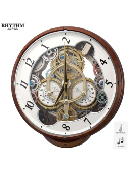 Pendule murale Animée - Température et Hygromètre Les roues et cadran tournent à chaque heure 12 + 12 mélodies et 6 chants de Noël - Volume réglable Arrêt automatique de nuit par capteur Marque RHYTM - Japon Gage de Qualité Garantie deux ans