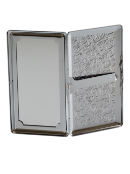 Rangez facilement vingt cigarettes de 100 mm dans cet étui métallique de très bonne qualité. Motif Arabesque Fabrication allemande Personnalisez cet étui à cigarette côté recto par initiales - Prénom Côté verso par un petit message...