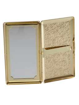Etui 10 cigarettes de 120 mm Etui métal finition Doré de très bonne qualité. Motif Baroque Avec un miroir de "Courtoisie" intégré à l'intérieur Taille "SLIM"