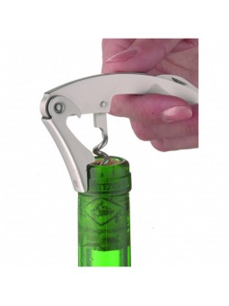 Couteau sommelier « PULLTAP'S » 3 pièces (lame micro-dentée, double levier avec décapsuleur, mèche noire),manche 12 cm rouge.- Le premier cran permet d'extraire le bouchon aux trois quarts (la mèche restant toujours dans l'axe du goulot). - Avec le second cran, on dégage sans difficulté le quart...