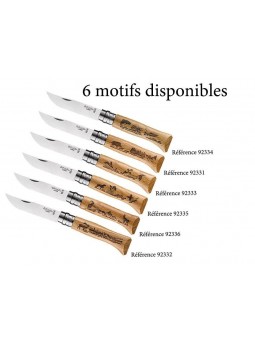 GAMME « ANIMALIA 3 »Couteau OPINEL n° 8 VRI, lame inox 8.5 cm, manche 11 cm chêne, gravure laser, décor Chien, virole tournante, en berlingot. Nous vous proposons de personnaliser ce couteau opinel sur la lame Noms - Prénoms - Initiales - Dates Une option porte-clefs bois est possible pour y...