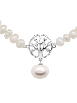 Collier en argent - perles d'eau douce - Motif arbre de vie avec oxydes Ce collier en perles véritables se porte en ras de cou, il s'accommodera parfaitement avec une jolie robe comme avec un beau chemisier. Les perles d'eau douce sont irrégulières, ce qui fait le charme des perles naturelles....