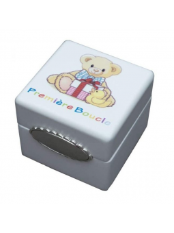 Boite à dents en forme de cube avec la représentation d'un ourson.