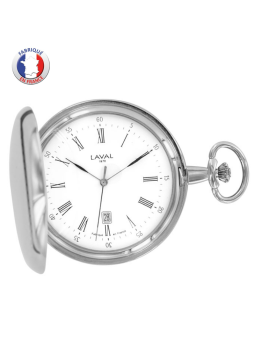 Montre de poche couvercle - LAVAL PARIS - France Cadran chiffres romains -Date - 3 aiguilles Personnalisez sur l'intérieur du couvercle par Initiales - Prénom - Nom - Message Livré avec chaîne et écrin