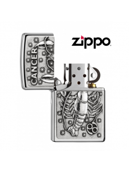 Zippo avec l'emblème du signe zodiaque Cancer en relief. Briquet Zodiac Emblem Cancer étoilé Le verso du zippo Chromé Brossé / Brillant Personnalisez ce zippo par un texte, logo ou une image gravée. Livré en coffret Compatible avec les différents inserts: Arc Insert - Butane Single Flame -...