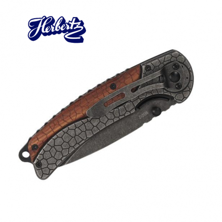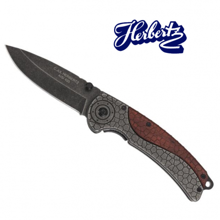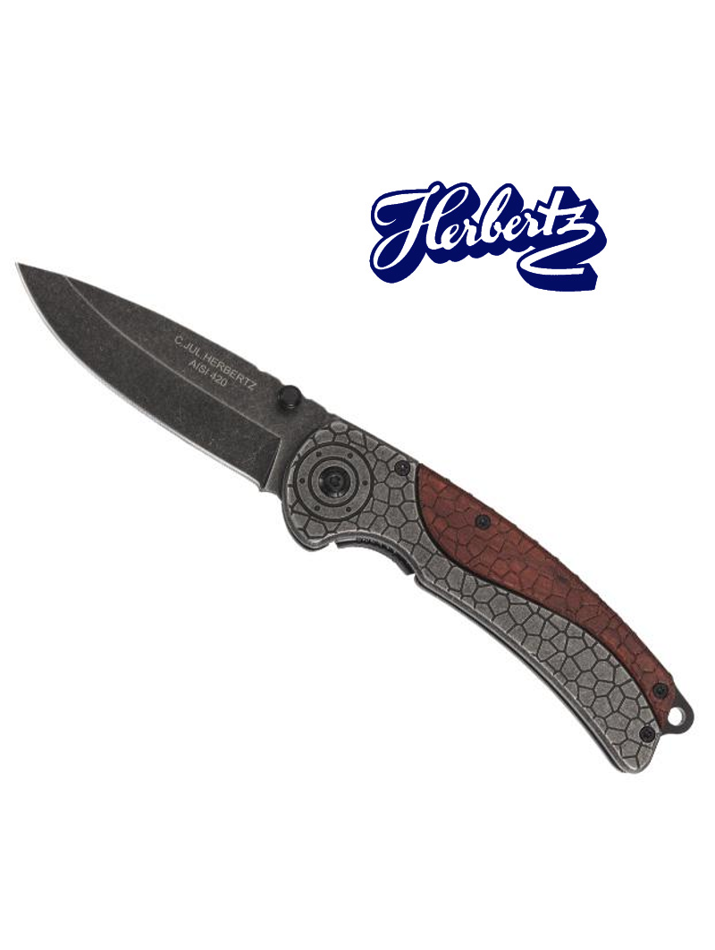 Couteau HERBERTZ, lame noire acier 420 à cran intérieur et à bouton double,