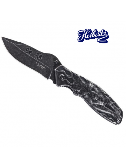 Couteau HERBERTZ, lame noire acier 420 à cran intérieur et à bouton double,