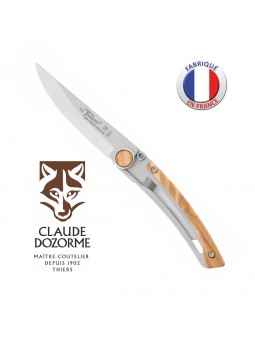 Fondée en 1902 par Blaise Dozorme, dit Le Loup, la marque Claude Dozorme est la signature d’une longue tradition familiale modernisée, sublimant une coutellerie toujours plus audacieuse en s’adressant à des micro marchés épris de couteaux. La marque Claude Dozorme, anti conformiste, affirme au travers de ses propres collections son parti pris créatif : partagée entre création pure ou pure réinterprétation de modèles classiques, ses collections sont toujours un reflet du melting pot culturel de notre société. Entre l’esprit nomade du Liner, l’élégance classique mais modernisé du Laguiole ou du Thiers, l’esprit fonctionnel et convivial de la Haute Cuisine, l’esprit ludique et joyeux des Berlingots..., on retrouve toujours au travers des produits de la marque Claude Dozorme, entièrement fabriqués en France, ce respect de nos racines adapté aux styles de vie de notre époque grâce à une tradition coutelière totalement modernisée et bousculée