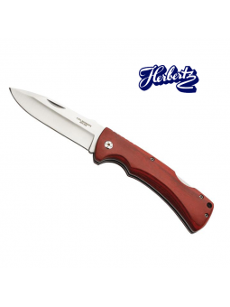 Couteau HERBERTZ, lame acier 420 à cran, manche 12 cm bois rouge, avec clip.