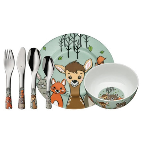 Ce set de 6 pièces avec couverts et vaisselle ne plaira pas seulement aux enfants mais aussi à leurs parents !