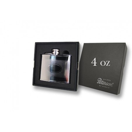 Flasque Peterson d'une contenance de 110 ml, une très belle finition striée polie miroir. Notre atelier de gravure vous propose de la personnaliser par un message.