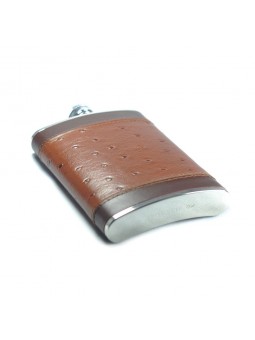 Cette flasque dispose d'une grande contenance de 240 ml, elle est en acier inoxydable gainée d'un cuir façon autruche deux tons.