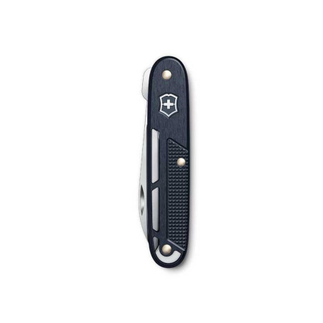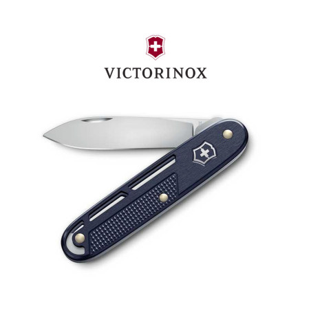 Manche 93 mm, alox quadrillé teinte bleu.grande lame à cran intérieur