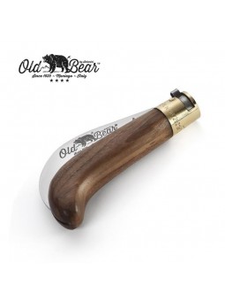 Serpette - OLD BEAR - Lame acier 420 - Manche 12 cm bois de noyer Système de verrouillage ( position ouverte/fermée) Fabrication artisanale Personnalisez sa lame et son manche par prénom - Nom - Message