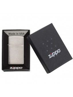 Briquet "SLIM" Brushed Chrome Zippo à essence de couleur chrome avec une finition brossée. Personnalisez ce zippo par la gravure d'un texte, logo ou portrait. Livré avec coffret