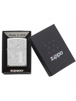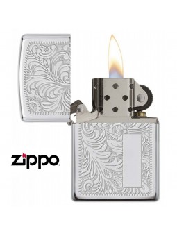 Zippo à essence de couleur chrome poli miroir avec un motif floral gravé. Briquet Venetian® Gravez des initiales ou un prénom dans le rectangle côté recto. Livré en coffret Compatible avec les différents inserts: Arc Insert - Butane Single Flame - Butane Double Flame