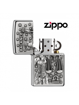 Zippo avec l'emblème du signe zodiaque Balance en relief. Briquet Zodiac Emblem Balance étoilé Le verso du zippo Chromé Brossé / Brillant Personnalisez ce zippo par un texte, logo ou une image gravée. Livré en coffret Compatible avec les différents inserts: Arc Insert - Butane Single Flame -...