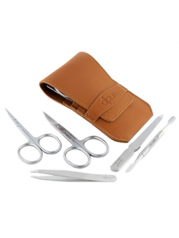 Pochette manucure ALPEN, cuir tabac, 5 pièces inox satiné : Cet ensemble d'accessoires de qualité pour manucure muni d'une magnifique pochette en cuir lisse mat sera l'élément indispensable durant vos voyages Une très belle idée cadeau, vous pouvez personnaliser la pochette par une gravure.