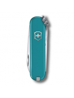 Couteau Classic Tropical Surf translucide - VICTORINOX Equipé d'une lame - Une lime à ongles - Ciseaux Personnalisez sa lame et sa coque Le compagnon de votre quotidien Existe dans d'autres coloris