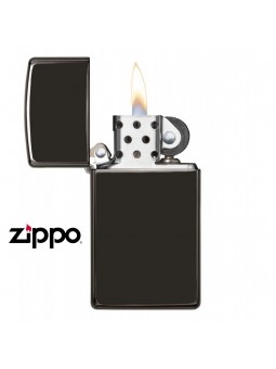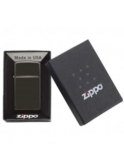 Briquet Zippo à essence High Polish Black - Couleur gris anthracite miroir Briquet Slim® Ebony Personnalisez ce Zippo par un message, des initiales une photo pour un cadeau unique.