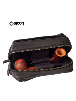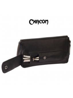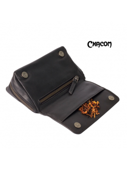 Blague à tabac * CHACOM * Combo Robuste pour pipes, tabac et accessoires en cuir souple NOIR. Personnalisez par de belles initiales - Prénom etc... Pour un cadeau d'exception