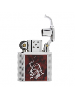 Briquet pierre à essence - Marque " ZORRO" particulièrement robuste. Equipé d'un réservoir en laiton garantissant une longue durée d'utilisation. Un modèle rouge orné d'un magnifique dragon. Livré en écrin avec une pochette en velour : un cadeau prêt à offrir !