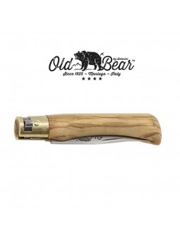 Couteau OLD BEAR - Lame acier 420 - Manche 12 cm bois d'olivier Système de verrouillage ( position ouverte/fermée) Livré en boîte individuelle avec certificat de contrôle qualité. Fabrication artisanale Personnalisez sa lame et son manche par prénom - Nom - Message