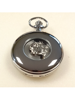 Montre de poche avec un mouvement automatique apparent et clapet de fermeture. Marque BAYARD Paris Personnalisez l'écusson par de belles initiales gravées L'intérieur du capot par texte ou photo couleur Montre livrée avec chaîne en écrin