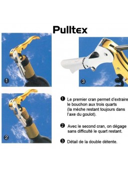 Couteau sommelier « PULLTAP'S » 3 pièces (lame micro-dentée, double levier avec décapsuleur, mèche noire),manche 12 cm rouge.- Le premier cran permet d'extraire le bouchon aux trois quarts (la mèche restant toujours dans l'axe du goulot). - Avec le second cran, on dégage sans difficulté le quart...